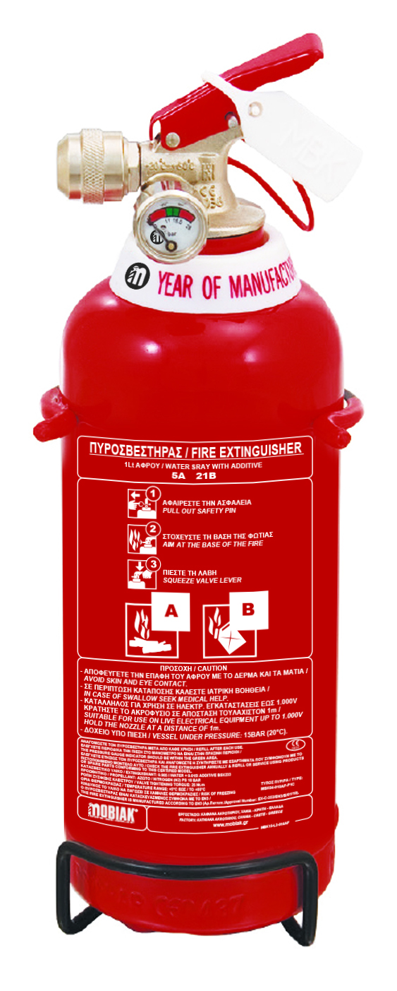 Πυροσβεστήρας 1Lt Αφρού (1,5%) με Δοχείο Μονόραφο με Πλαστική Εσωτερική Επικάλυψη