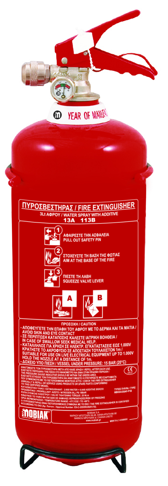 Πυροσβεστήρας 3Lt Αφρού με Δοχείο Μονόραφο με Πλαστική Εσωτερική Επικάλυψη