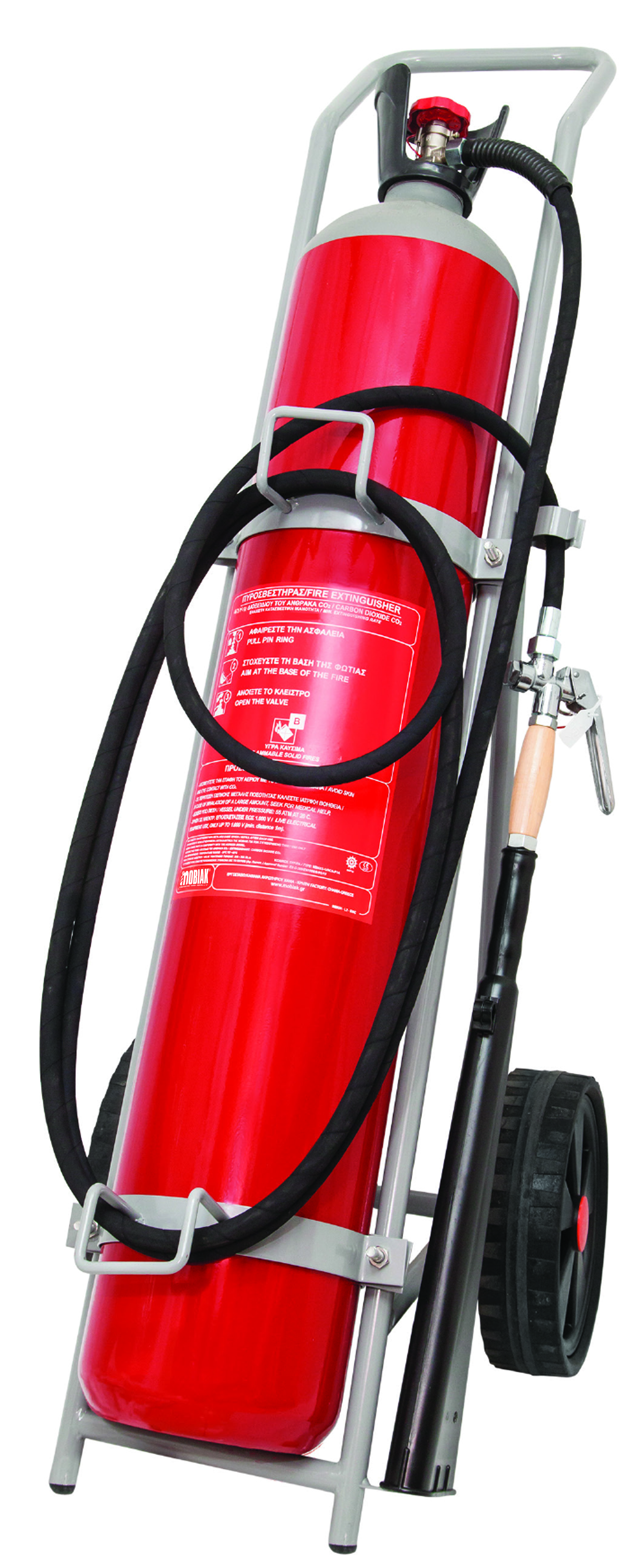 Τροχήλατος Πυροσβεστήρας 45Kg CΟ2 με μονή Φιάλη 68lt, με Λάστιχο Εκτόξευσης Υλικού, 5 μέτρων