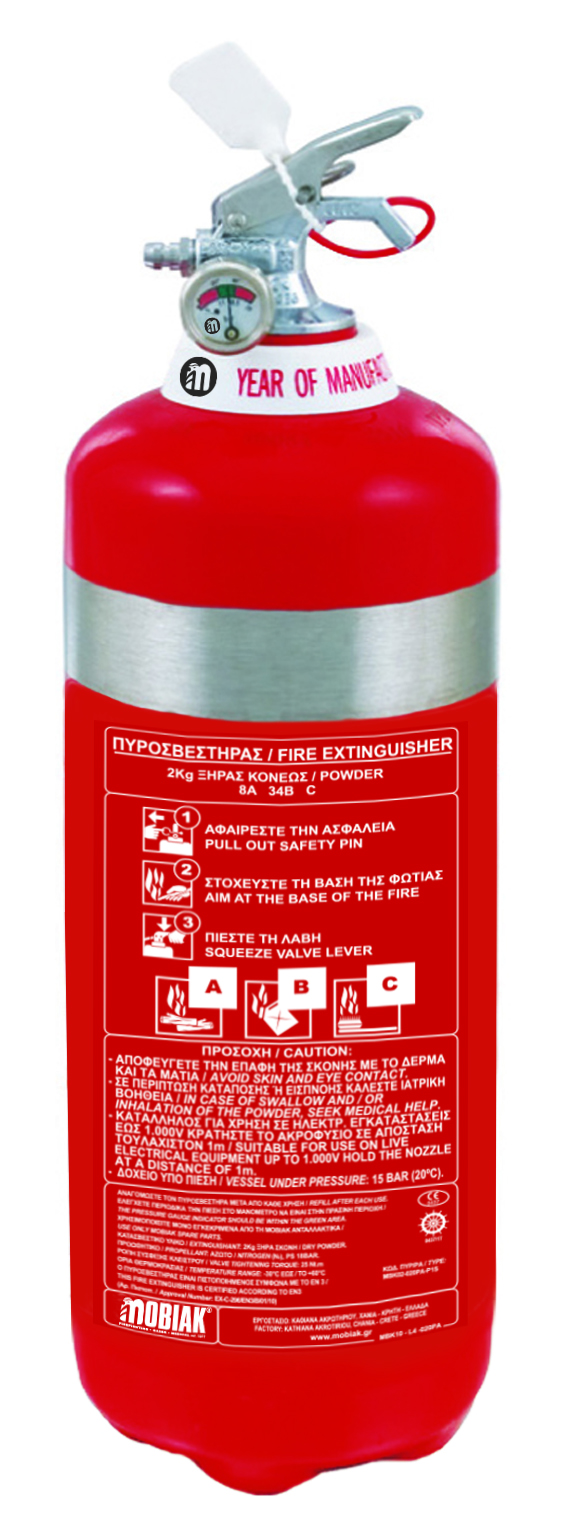 Πυροσβεστήρας 2Kg Ξηράς Σκόνης ABC 40% Ανοξείδωτος με Μονόραφο Δοχείο