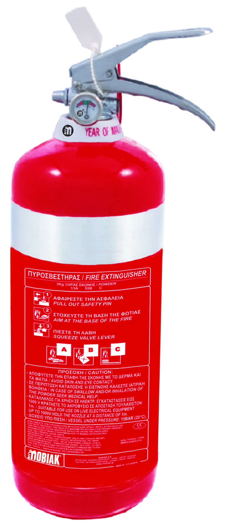 Πυροσβεστήρας 3Kg Ξηράς Σκόνης ABC 40% INOX, με Μονόραφο Δοχείο