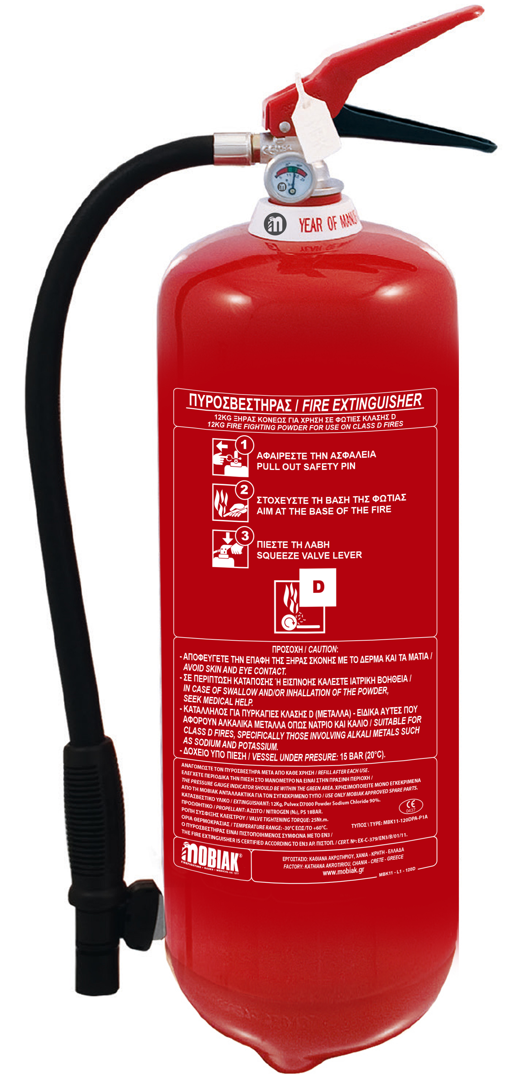 Πυροσβεστήρας 12Kg με Σκόνη D για Κατάσβεση σε Φωτιές Μετάλλων